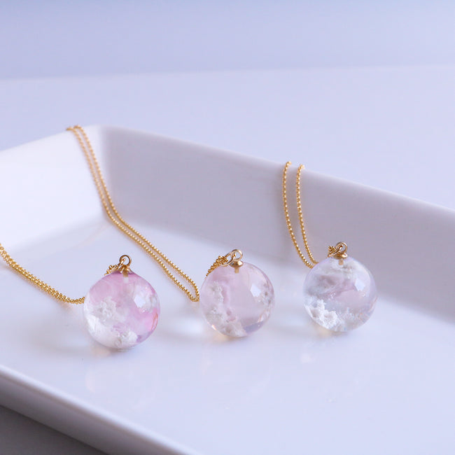 Inspired by sakura and spring colors! Pendant size: 16mm.Chain Length: 45cm + 5cm adjuster Material: High quality UV resin, 16k Gold Plated This is a B grade item. The coating didn't go well, leaving the orb quite asymmetrical, especially at...